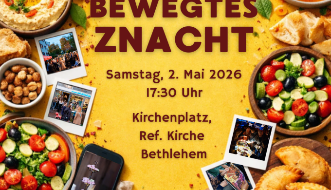 Beim bewegten Znacht teilen Menschen aus dem Quartier Speisen und die Geschichten dahinter. Gemeinsam essen, zuhören und erzählen.